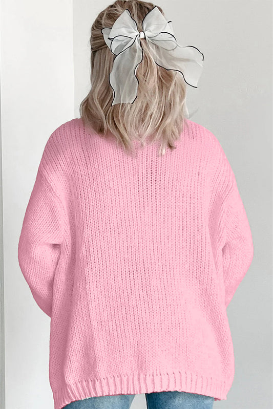 Light Pink Christmas Tree Print Open Front Drop Shoulder Knit Cardigan