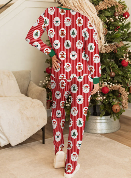 Red Striped Christmas Santa Claus Long Sleeve Pajama Set